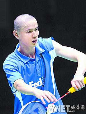 2008“李寧杯”中國羽毛球大師賽昨天上午在常州市奧體中心體育館正式揭開戰幕。素以羽壇帥哥著稱的小鮑昨天首輪亮相竟以光頭示人。這一懸殊極為反差的造型不僅讓現場觀眾和眾多記者頗感驚訝,就連他的對手泰國的波薩納也極不適應。