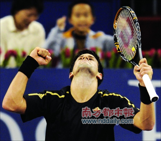 但德約科維奇還是掩飾不住第一場(chǎng)大師杯勝利給自己帶來的快樂。結(jié)束比賽后,他向掛滿塞爾維亞國旗一側(cè)的看臺(tái)不停地?fù)]手道謝,感言是球迷的吶喊聲給了自己很大動(dòng)力。接著他還特別用中文向另外一側(cè)的觀眾席說了聲“謝謝”,認(rèn)為自己的開局“很好彩”,開門紅更是一個(gè)“好兆頭”。退場(chǎng)時(shí),不斷有靠近場(chǎng)地的觀眾席上的球迷向小德索要禮物,球拍明顯是球迷們的主要獵物,但德約科維奇只肯摘下兩只護(hù)腕相贈(zèng),甚至,連喝剩下的半瓶子水也不忘帶走,顯示出與其年紀(jì)頗不相仿的嚴(yán)謹(jǐn)。