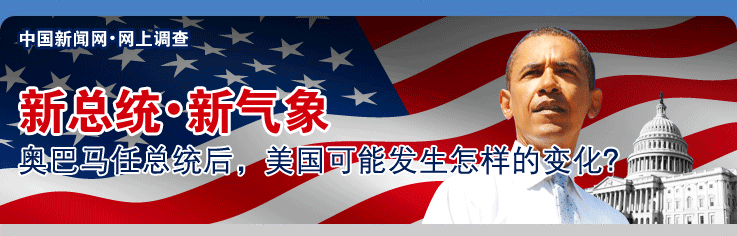 美國選民2008年11月4日投票的結果顯示,民主黨候選人奧巴馬將當選美國新總統。您認為奧巴馬上任后,美國在外交、經濟、軍事等方面將會發生怎樣的變化?我們推出網上調查系列選題,歡迎您踴躍參與,發表見解。