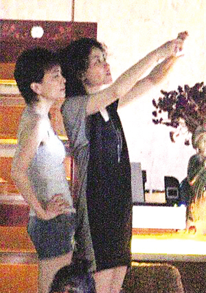 日前,記者在北京工體附近酒吧遇到某劇組正在拍戲,圍觀群眾議論紛紛“王菲來了,她老公也在!還有徐靜蕾!”原來是張一白導(dǎo)演的電影版《將愛情進(jìn)行到底》,劇組在酒吧拍攝一場(chǎng)聚會(huì)的戲。當(dāng)天正好拍攝李亞鵬和徐靜蕾一場(chǎng)擁抱的內(nèi)容,由于二人的性格比較靦腆,原本一場(chǎng)簡(jiǎn)單的戲份反復(fù)拍攝多次,這時(shí)記者在人群中意外地發(fā)現(xiàn)了王菲的身影,身著黑色連衣裙打扮十分樸素。王菲不但在一旁觀看并且拿著手機(jī)拍攝視頻,邊拍邊和李亞鵬的經(jīng)紀(jì)人馬葭在說著什么。一個(gè)小時(shí)后,劇組終于有了一段較長時(shí)間的休息,李亞鵬快步走到王菲身邊,與妻子聊了起來。開始兩人只是默默站著,不一會(huì),王菲就小鳥依人般地靠在李亞鵬身邊慢慢坐了下來,牽起了老公的手,片場(chǎng)秀起了恩愛。