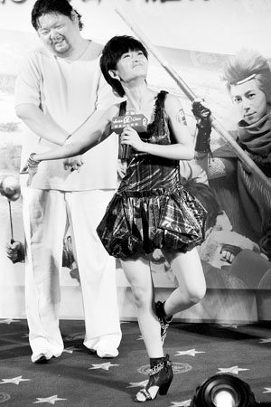 日前,古裝喜劇《嘻游記》在五棵松Jackie·Chan耀萊國際影城首映。何炅和謝娜兩位主演出席。