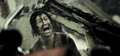 以唐山為題,觀眾自然也關注地震戲拍得怎么樣,就特技而言應該說馮小剛交出了一篇不錯的答卷。影片開篇的唐山大地震場面拍得驚心動魄,3分鐘內,觀眾剛體會到四口之家的溫馨,馬上就見證了地獄般的滅城,地陷、屋塌和震后的哀鴻遍野,這段戲結合置景搭建和電腦特效,有小細節的真實質感,也有大場面的壯觀殘酷,拿出來跟《2012》比都不算失禮。此段戲后,徐帆一句凄厲的“老天爺,你個王八蛋!”成為觀眾的首個情緒迸發點,場內抽泣聲此起彼伏。