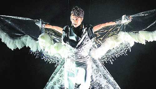 中新網(wǎng)7月19日電 韓庚脫離韓國(guó)天團(tuán)Super Junior單飛,昨天在北京演唱會(huì)上化身天使,從巨大的金屬殼中“破繭而出”,象征他重新出發(fā),現(xiàn)場(chǎng)采用3D隱形懸浮科技幕打造出虛幻的韓庚共舞,噱頭十足。
