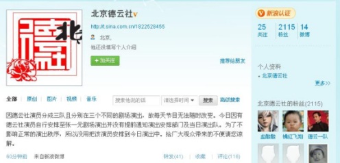 德云社在微博指出:“因德云社演員分成三隊且分別在三個不同的劇場演出,故每天節(jié)目無法隨時改變。今日因有德云社演員自行安排至張一元劇場演出并沒有提前通知演出安排部門及當(dāng)日演出隊。為了不影響正常的演出秩序,所以沒用把該演員安排到今日演出中。”