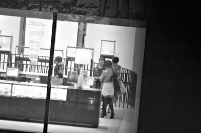 昨晚8點,淮海路香港廣場蒂凡尼旗艦店被拉起了“警戒線”,不接待顧客,也不允許行人靠近半步。記者接到線報,現場正在拍攝電影《極速天使》,而且是張柏芝、湯唯、劉若英三位重量級演員的對手戲。記者趕到現場發現,三人在店鋪二樓拍攝,湯唯穿著一套牛仔服,頭上綁著彩色頭帶,看起來年輕活潑。張柏芝則是一身短袖T恤搭配黑色緊身褲襪,頭發扎在腦后,梳得光光的,造型十分火辣。劉若英穿著白色裙子和灰色外套,搭配過膝黑色長靴。相較張柏芝的強大氣場,湯唯顯得有些“弱”,站在柏芝的身旁應和著幾句臺詞,都笑得很燦爛。