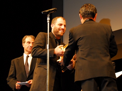 10月28日,以色列參賽電影《樂隊來訪》上臺領(lǐng)取金麒麟獎。(來源:東京國際電影節(jié)官網(wǎng))