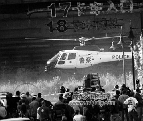 你能看到布景單位新架設上的“帝國進出口”字框,那輛我們之前提到的中國警車,還有參與拍攝的中國警用直升機和黑鷹直升機。據報道,有人在《變形金剛2》拍攝現場發現了一輛“藍色前燈的漂亮銀色雪佛蘭考維特跑車”,還看到一輛銀色帶藍色條紋的奧迪R8跑車,三輛摩托車(分別是藍色、粉色和黑色),它們可能就是續集的新角色。