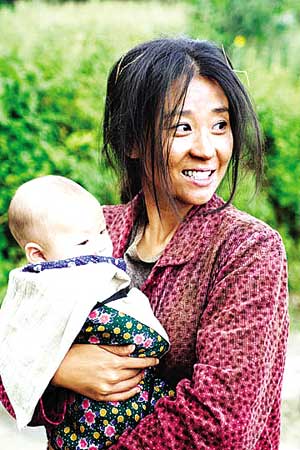 還有櫻桃為紅紅送傘的戲,一路上,無數(shù)次跌下梯田的田埂,卻又堅強地爬起來,好不容易到達了學(xué)校,站在雨中,那樣純真無邪地笑著看著紅紅,眼中不帶任何雜質(zhì)。即使沒有語言,僅僅一個微笑,已讓人感動淚流。