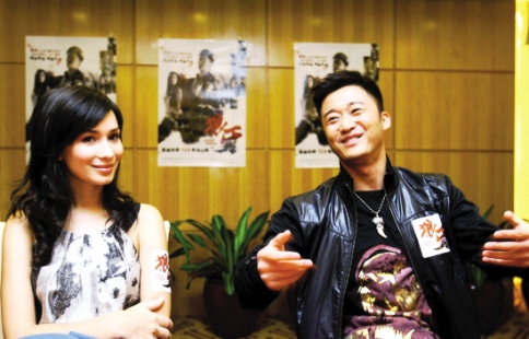 女主角Celina Jade聽吳京(右)訴說(shuō)導(dǎo)演苦
