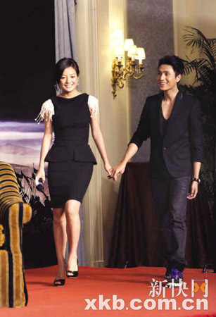 發布會一開始,牽手出場的趙薇和陳坤就很默契地“控訴”導演,一邊帶大家到各處去吃好吃的東西,一邊勒令兩個人減肥,因為從軍的人都要比較瘦。之后,趙薇透露其實是陳坤挑自己來演花木蘭的,對此,陳坤也進行了證實。