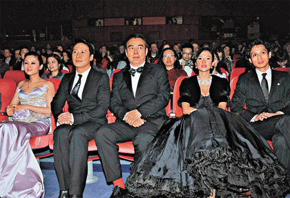 (左起)陳紅、黎明、陳凱歌、章子怡及安藤政信盛裝出席首映禮,觀眾反應甚佳。