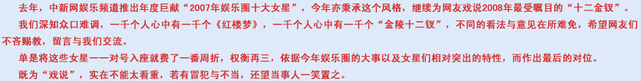 2007年中新網年度策劃的十大女星頭名,她當之無愧。