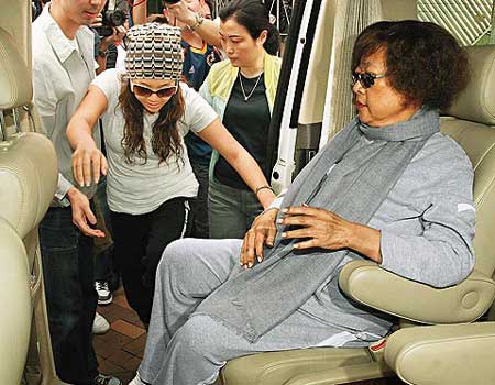 重視外表的肥肥,這次外出刻意打扮年輕,戴上墨鏡、假發,并穿著運動服、運動鞋、披上圍巾,不過墨鏡下,仍可見到她面容略顯憔悴,手背也因打針而烏青,光10個階梯她便走得十分費力,鄭欣宜必須半推半扶,她才能順利走進發廊。經過1個多小時的“整頓”,肥肥步出發廊時煥然一新,不但原本扁塌的假發變挺,黃臉也因上了妝而變得粉嫩,當她上車時,親友又一字排開高喊:“讓開,別擋路!”接著一行人浩浩蕩蕩返回肥肥劍橋花園寓所。