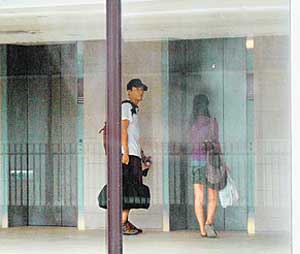 他們坐在落地窗旁,互動宛如老夫老妻,他邊吃邊翻報紙,她則望著他發呆,餐畢他們回房整理行李,近11時到柜臺退房,由男方刷卡埋單,離去時,女友見他邊走邊整理行李不方便,還主動幫他拿飲料。礁溪老爺酒店是當地5星級飯店,據悉 2人住1晚要價近萬元(新臺幣 下同)。