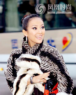 正在拍攝《梅蘭芳》的章子怡最為搶眼,不過由于山中寒風凜冽,章子怡的穿著略顯臃腫。圖據鳳凰網