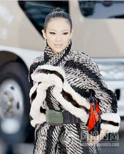 章子怡出席服裝春夏秀 巨鉆粗腰帶亮相長城(圖)(3)