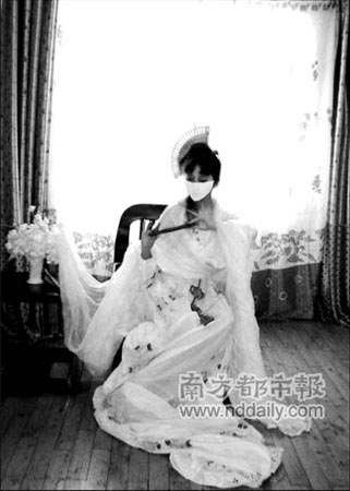 行頭:蚊帳一匹,床單一副,扇子一個。以飄逸的白色表現古典服裝行云流水、婉約浪漫的情懷……