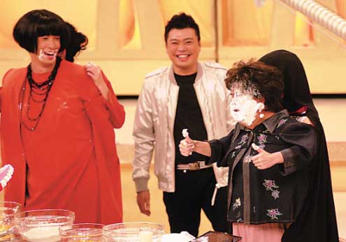 “荷媽”李司棋、“紅姨”米雪、“JO飽”夏雨、“SA姨”關菊英“冰釋前嫌”,一起為新餅店招募新員工,結果引來了曾志偉、陳豪等搗亂分子,曾志偉豪不留情地對他們大扔蛋糕,夏雨和關菊英都不幸“中招”,滿臉奶油,雖然狼狽,但也很“搶鏡”。