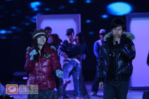 中新網12月31日電 12月30日晚,“2009湖南衛視跨年演唱會”進行首次帶機聯排。記者現場看到,張杰牽手謝娜共唱情歌,舞臺上“眉來眼去”,曖昧不已。