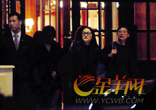 成龍穿著一件高級的黑衣絲綢唐裝,戴著墨鏡,面帶微笑,神采飛揚,真有幾分“壽星佬”的喜氣。房祖名的打扮非常另類,穿著一件迷彩服和一條綠軍褲。