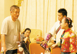 很少能看到趙本山和小沈陽同臺表演,這次海南之行的首場演出,恐怕也是“劉老根大舞臺笑轉2009”全國巡演中唯一一場本山師徒同臺的表演,因為觀眾是參加博鰲論壇的國際政要和經濟專家。在演出后臺,本山首先演練了一遍即將在舞臺上表演的“吹拉彈唱”,隨后就開始對自己的徒弟一一評點。別看徒弟們個個在舞臺上精神抖擻,但在面對如此大場面時不免有些緊張,紛紛對師父說出自己的顧慮。“別緊張,就當是在咱們沈陽中街基地演了!”“你這個口我看可以使,沒關系,出了事我兜著。”“你中間的那一段就不要加了,不好,不文雅。”面對徒弟,本山嚴肅認真地對他們的表演提出要求。因為對徒弟的表演和絕活爛熟于心,本山三言兩語就指出了他們的不足,并且提出了建議。有了他的點撥,徒弟們個個信心十足地走上了舞臺……