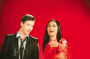 韋唯與維塔斯在錄音棚初次見面氣氛就相當融洽,盡管兩人語言不通,但維塔斯施展的耍寶逗樂功夫讓韋唯忍俊不禁。兩人面對鏡頭進入狀態很快,尤其是在對唱時更加自然親近。記者 俞亮鑫