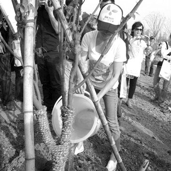 5月5日,世博會“綠色出行大使”周迅與世博局領導、媒體朋友赴上海辰山植物園,一同種下了世博綠色出行林。同時,她還出資捐贈了233棵樹,成為世博林首個捐贈者。