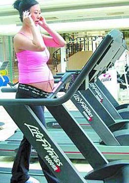 圖:翁虹懷孕九個月挺大肚做鍛煉 跑步機慢走