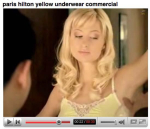 《世界新聞周刊》筆者在報道中戲稱希爾頓為“能吃掉男人的酒店業女繼承人”。廣告片里的希爾頓一頭淡金黃色的頭發,身穿短得不能再短的內褲,上身則搭配了一件同色系的比基尼內衣,通身都是誘人的鵝黃色。