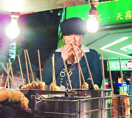 稍晚她回飯店休息片刻,果然大開“食戒”,先和工作人員去雙城街吃意大利菜,又意猶未盡直奔林森北路逛夜市,試吃路邊攤的水煮花生時(shí),還大喊“好好吃喔”!