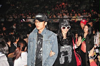 張柏芝、謝霆鋒攜手看陳奕迅演唱會。