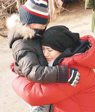 中新網12月6日電 袁詠儀(靚靚)、方力申及周汶锜繼續青海、甘肅探訪之旅,昨日他們探訪一對相依為命的爺孫,爺爺年邁,孫女雙目失明,爺孫無依無靠令三人深感難過,大會又安排了靚靚曾探望的女孩前來和她重聚,二人見面即哭成淚人,場面感人。