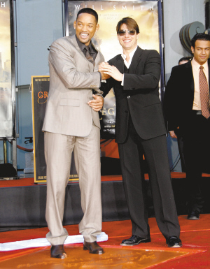 12月10日,影星威爾·史密斯(Will Smith)在洛杉磯好萊塢格魯曼中國戲院“星光大道”留下了自己的手足印。當日湯姆·克魯斯前往捧場,威爾心情大好,在印手印時還學著狗的樣子。