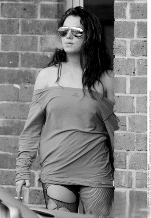 小甜甜布蘭妮9日參加舞蹈排練,一點都不在乎形象,不但穿著帶破洞的漁網絲襪,露肩裝也過于暴露。
