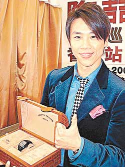 前天,陶喆出席了“1,2,3!我們都是木頭人”世界巡回演唱會(huì)香港站的記者會(huì),會(huì)上獲歌迷送上“樂壇教父”牌匾,又獲贊助商贈(zèng)送一只價(jià)值10萬元的名牌腕表,懂多國(guó)語(yǔ)言的陶喆更將手表型號(hào)的西班牙文當(dāng)場(chǎng)翻譯出來,原來是“征服者”的意思。