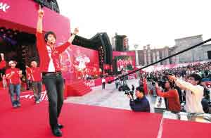 前日傍晚,由香港知名音樂人林夕和雷頌德共同為奧運贊助商創(chuàng)作的歌曲《紅遍全球》在奧運圣火點燃之際發(fā)布。在韓國著名組合Super Junior成員韓庚領(lǐng)頭下,18名來自全國各地的奧運火炬手與前奧運冠軍高敏等一起現(xiàn)場演繹了這首歌。作為目前韓國最當(dāng)紅的組合Super Junior(以下簡稱SJ)里面唯一一個中國成員,韓庚在中國的人氣銳不可擋,對于這次有幸擔(dān)任1號火炬手,他前晚接受本報獨家專訪時表示感到很開心,一定要看奧運的開幕式,并且他透露今年會將大部分時間放在中國,而且SJ也會分組一隊專門針對中國市場的組合,并計劃推出中文專輯。