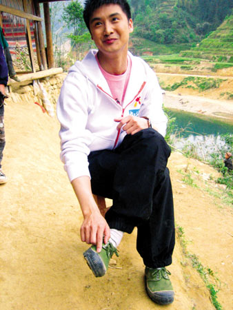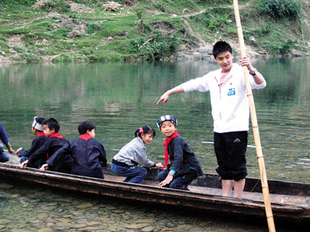 組圖:田亮貴州代課 做“艄公”為學生們擺渡