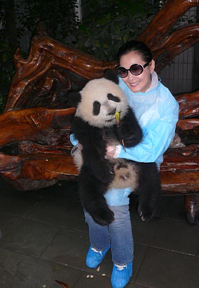 除了醫院探病獻愛心外,劉若英這次四川行程,也趁空去看了中國國寶大熊貓。當被告知園方開特例允許她真正擁抱一下小熊貓的時候,她受寵若驚,又怕自己承受不住熊貓的重量。“沒想到熊貓沒有想象得重,只是毛很松軟。”奶茶還偷偷摸熊貓大腿,發現真的摸不到骨頭。