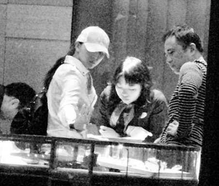 胡靜與男友挑鉆戒。