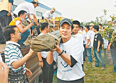 李連杰強忍淚水投入救災 親自搬帳篷等物資(圖)