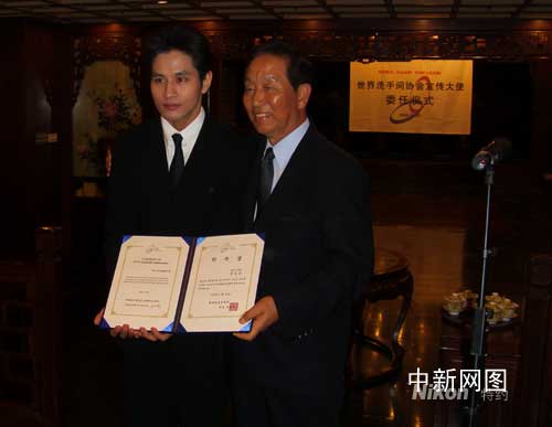 副會李曉林表示:很榮幸邀請到韓國著名歌星, “全民舞王”—— 劉承俊先生擔(dān)當(dāng)“2008年國際宣傳大使”。在宣讀了“2008國際宣傳大使”職責(zé)和義務(wù)后,邀請劉承俊先生共同簽署委任書。李曉林還說:第二屆世界“洗手間”協(xié)會總體大會將于明年在我國召開。計劃成陸續(xù)向中國農(nóng)村廣大鄉(xiāng)村、城鎮(zhèn)等地區(qū),投入具有世界級標(biāo)準(zhǔn)的洗手間設(shè)施和文化保潔用品。