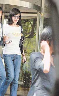 林熙蕾后搭計(jì)程車離開,仍是笑容滿面,吳、洪2人則顯得有些拘謹(jǐn),一起與楊紫瓊道別,像是小學(xué)生放學(xué)跟校長說再見。