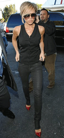另外,談到“夫妻相”這事就不能不提“貝嫂”維多利亞近來的穿著,一貫熱衷緊身衣褲的維多利亞,當日卻一身寬松休閑造型亮相,牛仔褲風格酷似老公,不過帶著太陽眼鏡的她,依然全程面無表情。