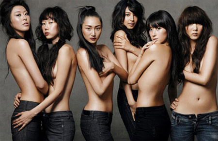 中新網6月26日電 據體育朝鮮報道,韓國2006至2007年度的6位超模匯集一堂,大膽裸露上身,模仿名模吉賽爾-邦辰的經典造型,為7月刊時尚雜志《Arena》拍照,火辣程度完全不輸模特前輩吉賽爾-邦辰。