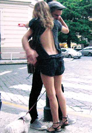 上周末,蓋提飛往布拉格,與在那里的西耶娜會(huì)合。兩人在街頭牽手遛狗,西耶娜身著一件背部全裸的輕薄衣衫,甚為風(fēng)騷。西耶娜緊緊摟著已婚富豪,親吻其面頰。而男方也是不時(shí)輕撫西耶娜面龐,滿臉柔情。