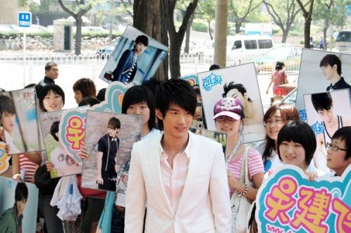 發(fā)布會(huì)當(dāng)天,現(xiàn)場(chǎng)人潮攢動(dòng),眾多歌迷從外地專程趕來(lái),癡心的小“飛鼠”們穿著統(tǒng)一的會(huì)服,高舉著各色的燈牌,一遍又一遍的呼喊著吳建飛的名字,焦急,緊張,期盼的氣氛幾乎讓在場(chǎng)的每個(gè)人手心都滲出了汗水,所有人都在期待著今天的主角吳建飛的出現(xiàn)。下午1點(diǎn)半,一輛加長(zhǎng)的超豪華林肯轎車突然映入了大家的眼簾,伴隨著一陣陣的驚呼,轎車?yán)镒叱隽艘簧戆咨餮b的吳建飛,站在眾人面前的“新一代歌壇小天王”吳建飛今天化身成為了風(fēng)度翩翩的貴公子,用他特有略帶羞澀的微笑向到場(chǎng)的所有朋友們致謝。