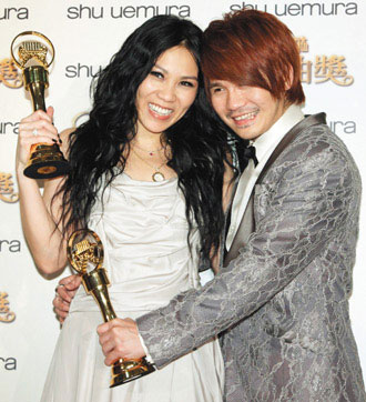 最佳國(guó)語(yǔ)男女演唱歌手曹格(右)、蔡健雅(左)
