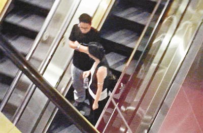 不知婷婷是不是不滿與Kevin雖然近在咫尺,卻可望而不可即,被掃興的她無聊得邊走邊玩拋水瓶,不過卻心不在焉,水瓶應(yīng)聲跌落地下,Kevin 見狀即第一時間俯身,為婷婷拾回水瓶,盡顯男士風(fēng)度,不過Kevin 卻沒有立即將水瓶交還,而是要婷婷好大一通撒嬌之后,才肯物歸原主。到達(dá)停車場后,兩人還是依依不舍,在車上再密語一番,Kevin才開車走人,真是纏綿。