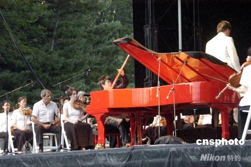 當(dāng)?shù)貢r(shí)間7月15日晚,中國(guó)青年鋼琴家郎朗首次在紐約中央公園音樂(lè)會(huì)獻(xiàn)藝,他與紐約愛(ài)樂(lè)樂(lè)團(tuán)合作,演繹了柴科夫斯基第一號(hào)鋼琴協(xié)奏曲。郎朗宣布現(xiàn)場(chǎng)演奏用的斯坦威限量版鋼琴將在網(wǎng)絡(luò)拍賣,所得款項(xiàng)全部用于支援中國(guó)四川地震災(zāi)區(qū)重建。中新社發(fā) 李靜 攝
