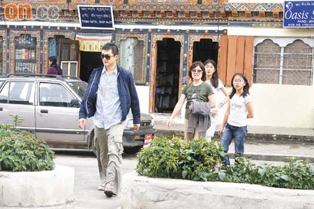 王家衛(wèi)昨日與太太及兒子離開不丹。圖片均來自香港《太陽報》。